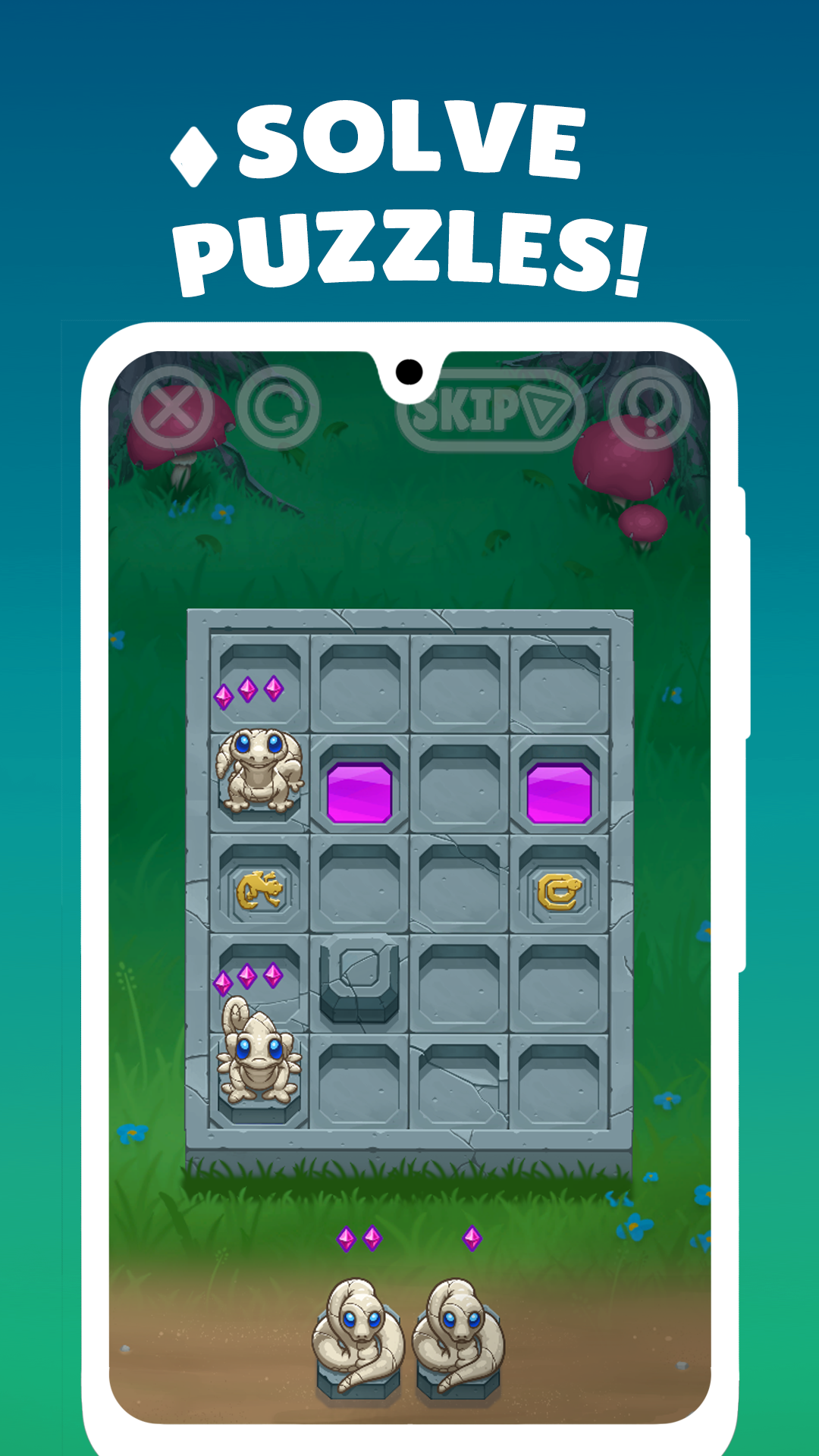 Garden Sprites is a grid-based puzzle game where you guide enchanted stone animals to the goal.